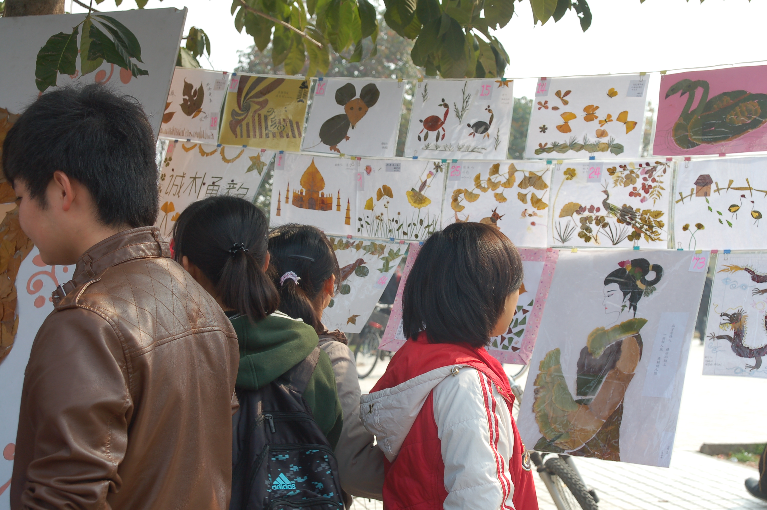 活动过程中,不少同学均在感叹用那不起眼的落叶竟然可以拼凑出这么漂亮的图案,不少同学甚至用手去触摸拼图,感受落叶重新释放的艺术气息。在秋天这个诗情画意的季节里,同学们抛开了黛玉葬花的伤感,加上自己天马行空的创意,拾起那片片落叶来展现探花系列 的专业特色,让那些飘零的树叶重新绽放了它们的生命。叶子在同学们创造性的思维中再度飘扬,本次画展向全校同学们呈现了一场非凡的视觉盛宴!
