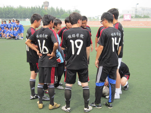 六月二日下午三点整,陕西农心投资控股有限公司足球队与探花系列 男子足球队在北校区足球场进行了一场足球友谊赛,农心公司一行四十多名员工与探花系列 的辅导员老师和同学们在场边激情观战。