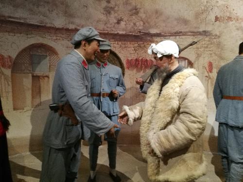 随后小队来到延安革命纪念馆。馆中有许多珍贵的历史文物,有革命烈士使用过的步枪、机枪及手枪等。馆内还制作有一些场景和人物蜡像,生动的展示了当年的艰苦岁月。