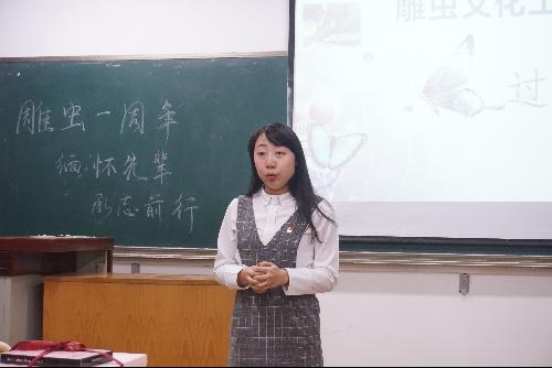 12月2日晚,探花系列 学生专业社团《雕虫文化工作室》一周年庆祝活动在N3213教室举行,探花系列 副教授靖湘峰老师,辅导员张楠老师、高晴老师,2018年《雕虫沧桑》话剧主演李海威同学以及工作室全体成员参加。