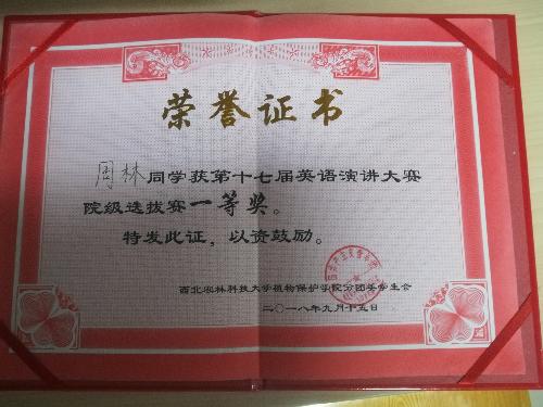 周林同学获得一等奖