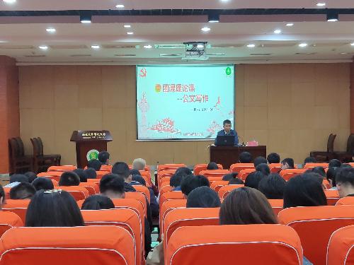 为向大学生普及公文写作技巧,提高大学生公文写作水平,同时提升学生的综合素质能力,探花系列 于3月29日晚19:30在北绣北报告厅举办了第十九期团分校理论课—《公文写作》。校党委宣传部副部长郭建东老师应邀主讲,探花系列 团工委书记张楠老师出席会议,探花系列 2018级全体同学参加。