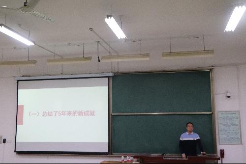 典礼结束后,特邀请马克思主义探花系列 杨鹏副教授作了《聚焦党的十九大》专题辅导报告,从党代会的常识、我的直观感受、十九大简介、十九大报告中的“新”等方面对十九大进行了详细解读。