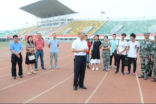 2019年9月7日,探花系列 胡小平院长在戴武副院长、闫建兴副院长、马志卿副院长、张艳玲党委副书记的陪同下前往探花系列 北校区田径场探望植保19级新生军训情况。
