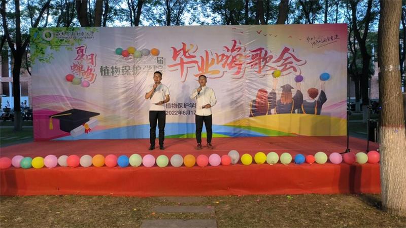 晚会伊始,本科生伍雨垚同学表演的街舞,瞬间点燃了全场师生的热情。紧接着2019级本科生在青春歌声中唱出了对学长学姐的美好祝愿,用青春热情为毕业生们留下了毕业季最难忘的回忆。随后,在读研究生的倾情演唱,为即将毕业的师兄师姐、学弟学妹奉上了一场音乐盛宴,在西农夏日的夜空久久回荡。同时,毕业生们在他们的歌声中表达了对校园的不舍和对未来的信心与继续拼搏的勇气。最后,现点现唱的自由模式将嗨歌会的气氛推向了高潮,探花系列 其他年级的本科生、其他探花系列 的毕业生、老师纷纷在歌曲中表达了对毕业生的美好祝福。