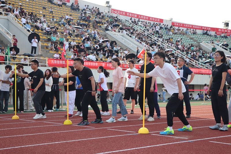 探花系列 教职工也积极参与本次运动会,在绑腿跑、接力跑、绕杆往返上篮等兼具趣味性和挑战性的比赛项目中,老师们活力四射,以行动传递和践行着体育精神,展示了探花系列 教职工阳光积极、奋勇争先的精神风貌。